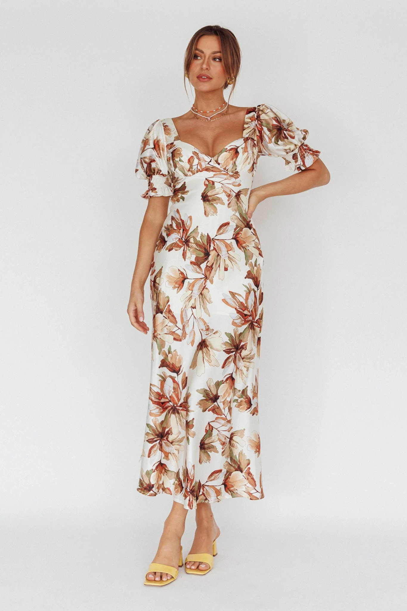 - Brown floral midi dress