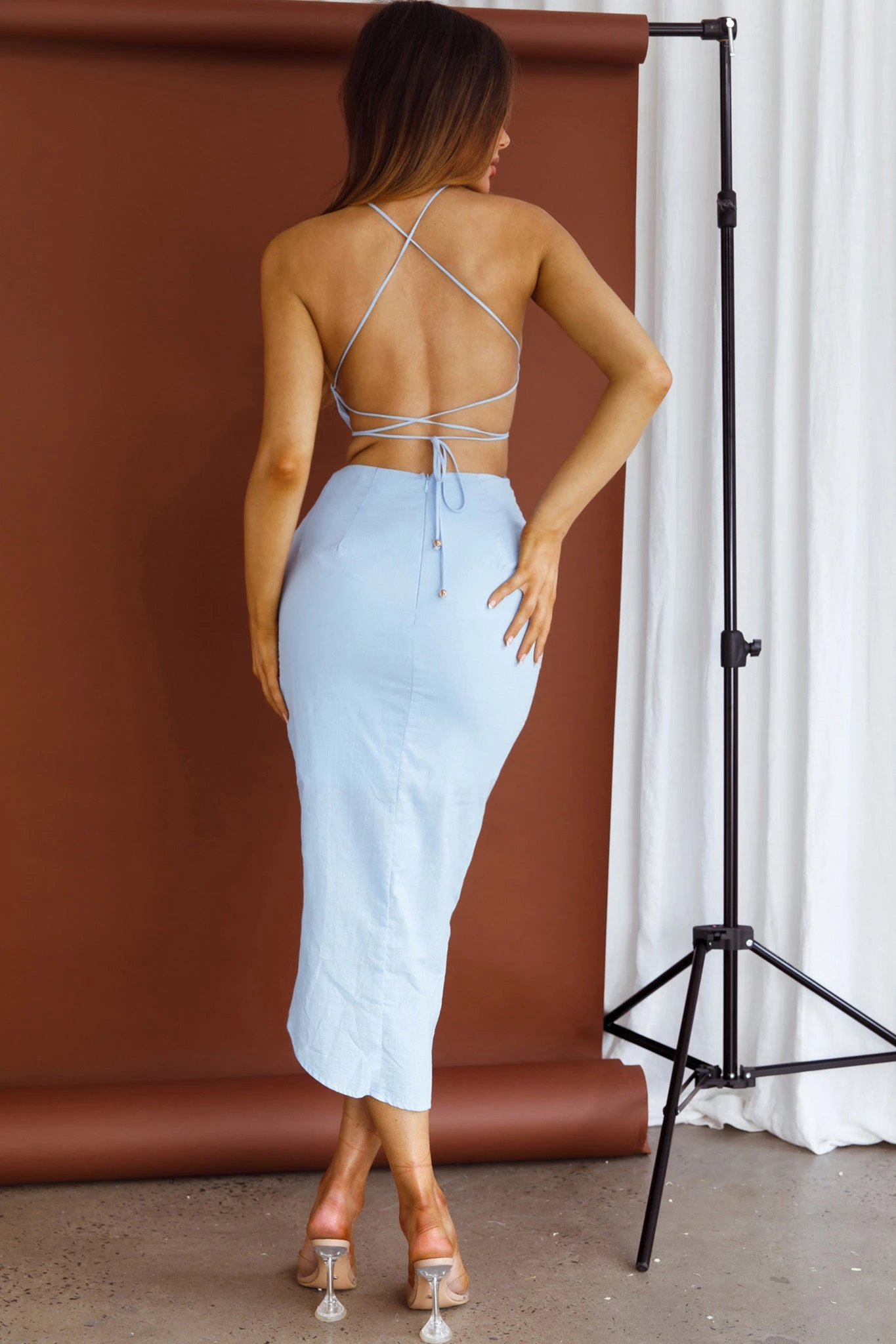 - Blue midi dress