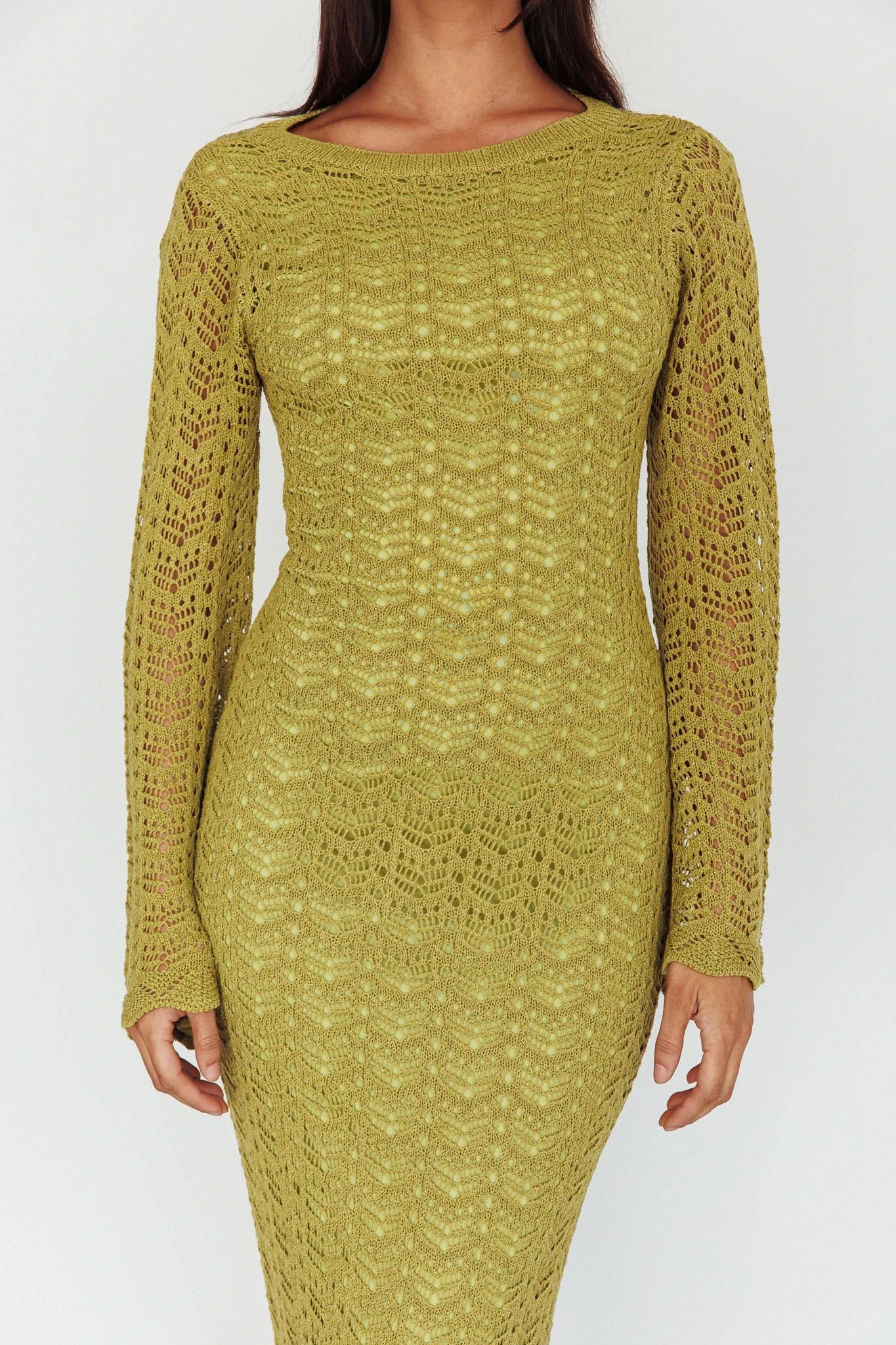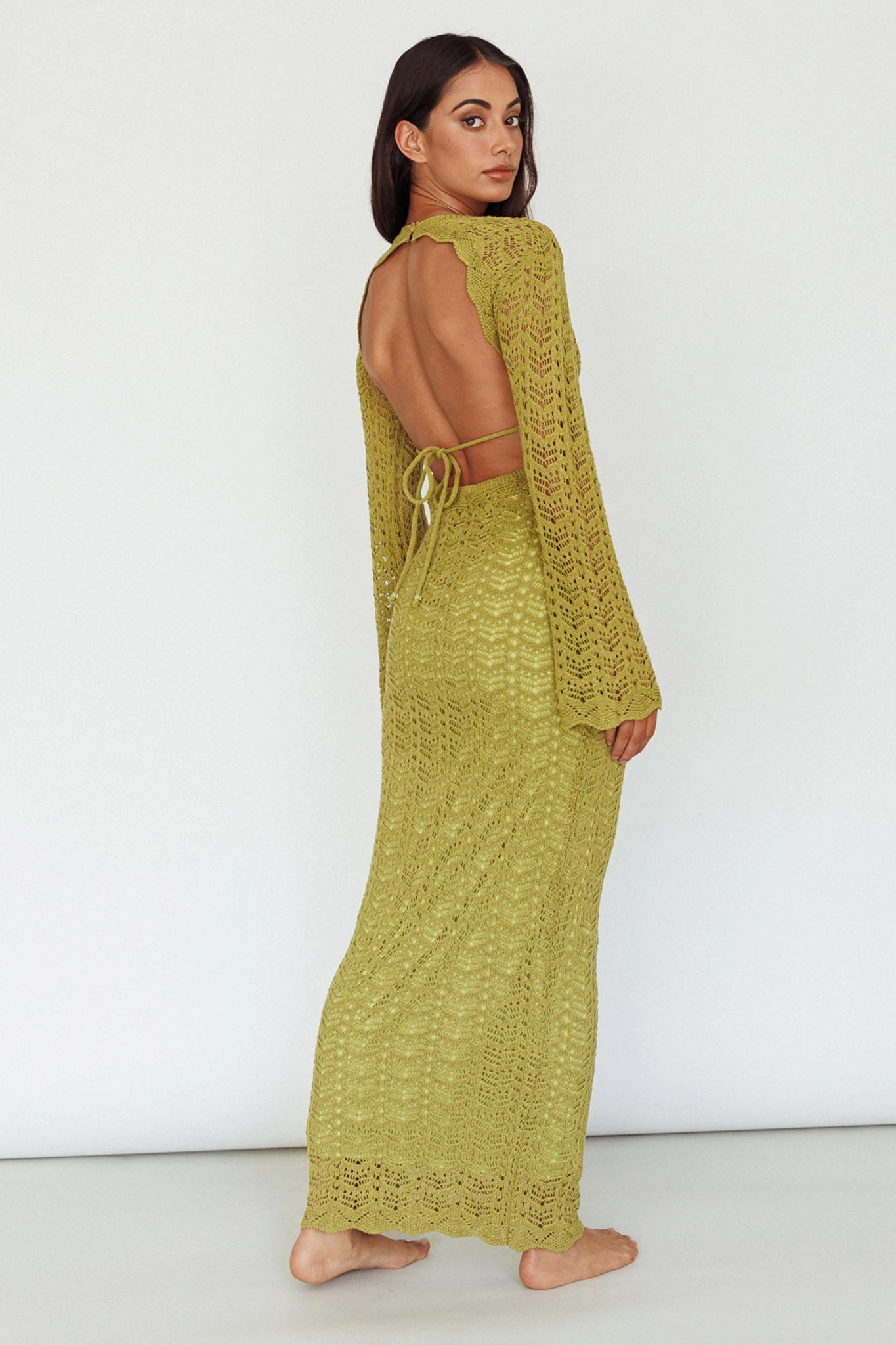 Breeze through your weekend in our pretty Hyland maxi dress. We are in love with its on-trend crochet knit throughout and sexy, open back. Perfect for sunset happy hours teamed with wedges and a basket-weave bag for a super cute look.