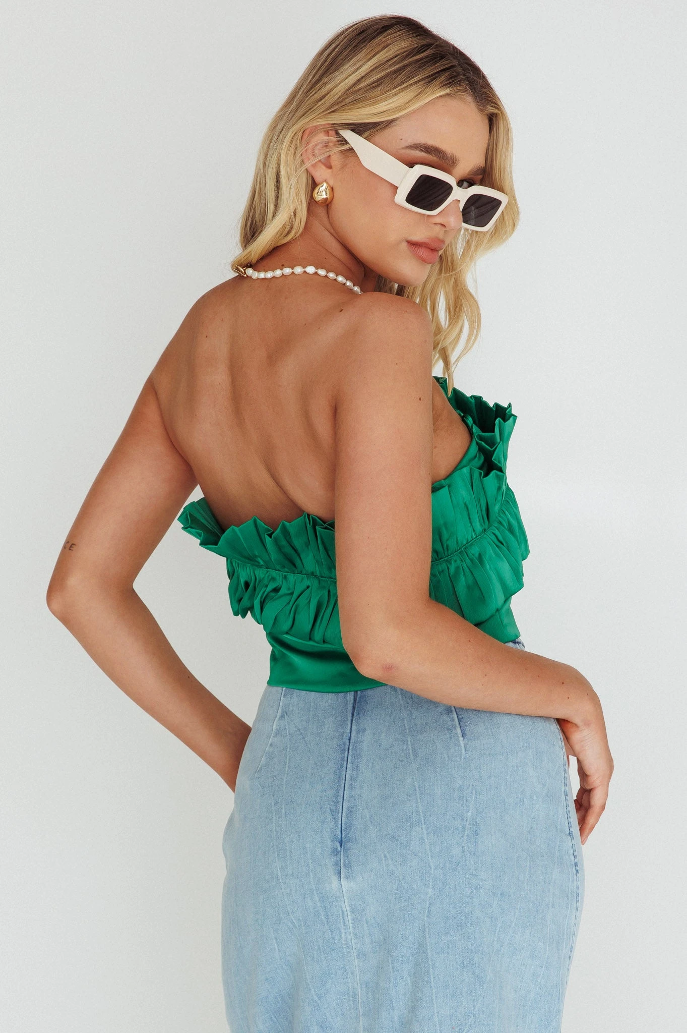 You’ll be the belle of the ball in our super cute La Belle crop top. Featuring a pretty, frill-trimmed neckline, it’s perfect for a girls’ cocktail night teamed with a sequin mini skirt and heels.
