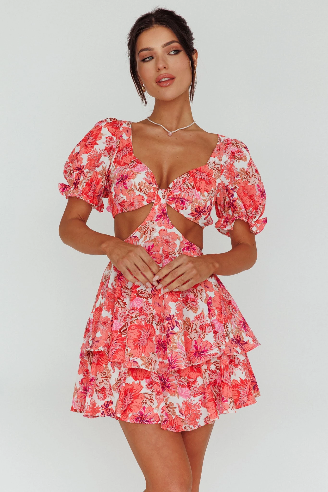 - Pink floral dress