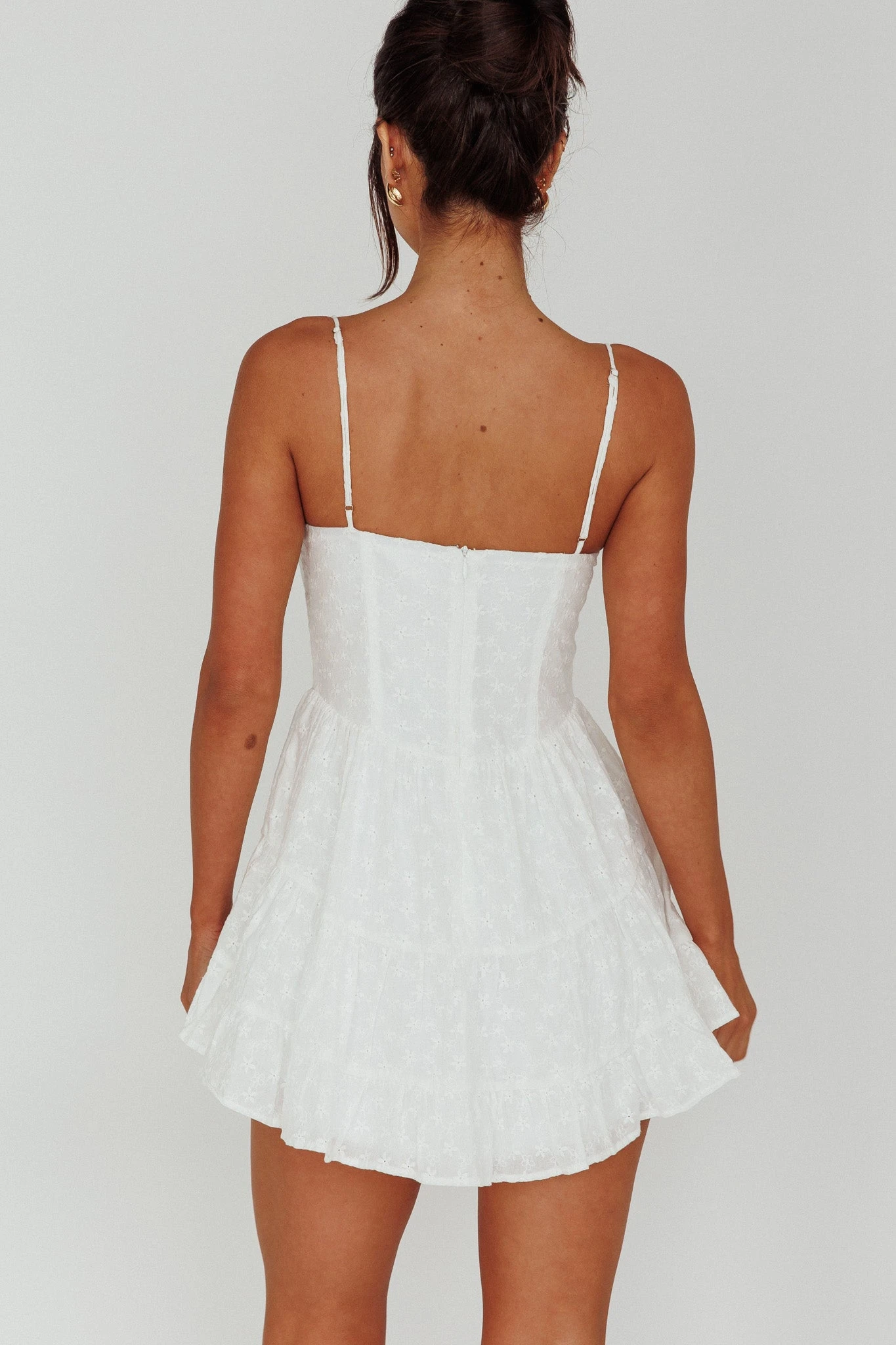 Our Summer In Sicily mini dress will have you feeling like packing your bags and jetsetting off for a European adventure. Featuring the prettiest eyelet embroidery fabric and hook and eyes in the bodice. It’s perfect for a flirty date night with your crush. Team it with mules and a baguette bag for a dreamy look.