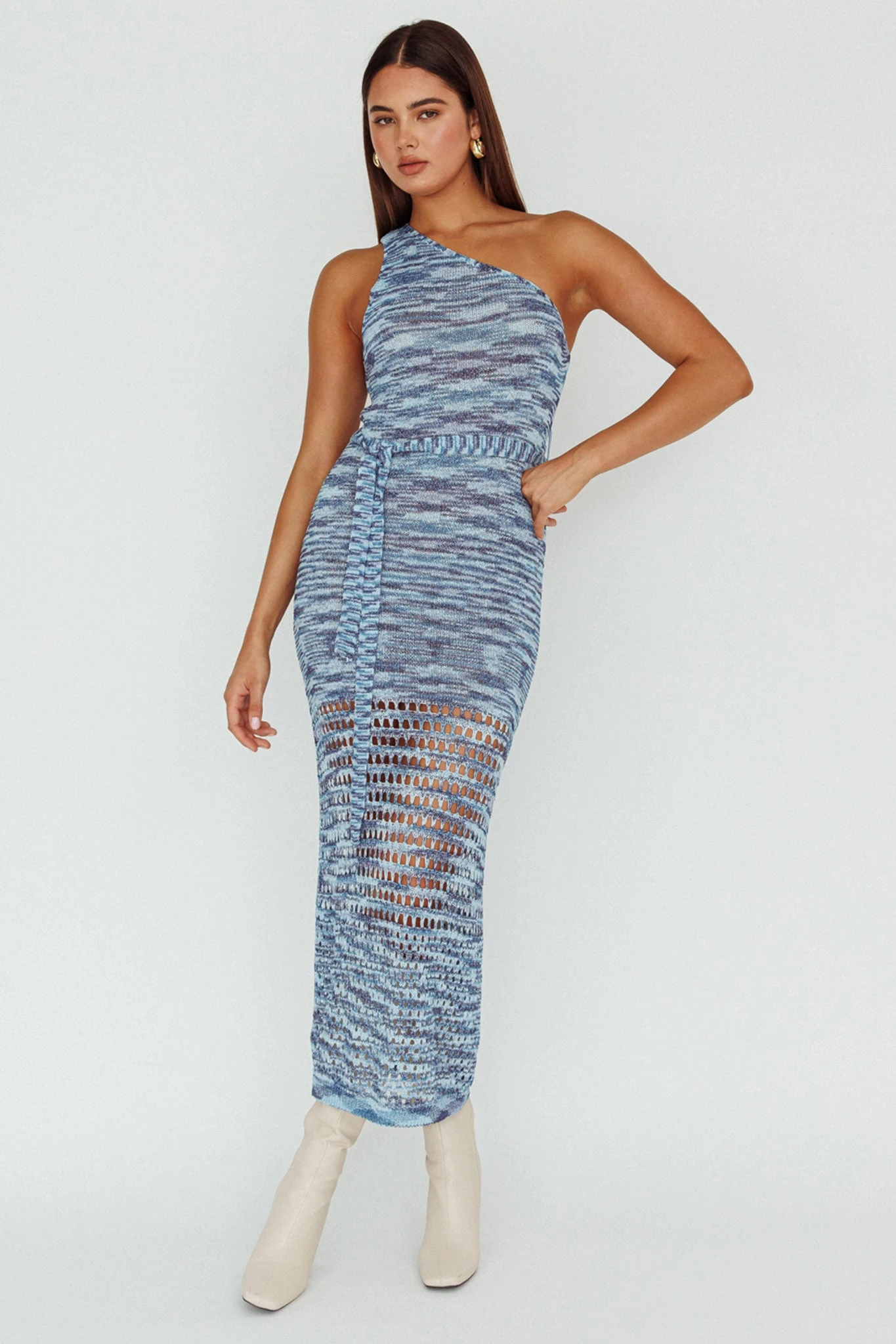 Make an entrance in our chic Tyanna midi dress. Featuring a one-shoulder style and knit fabric. It’s perfect for weekend lunch dates with your girls. Team it with mules and a tote for a look that will turn heads.